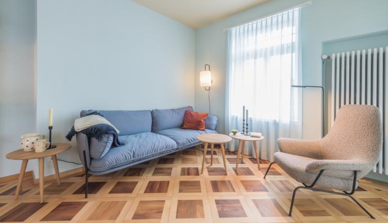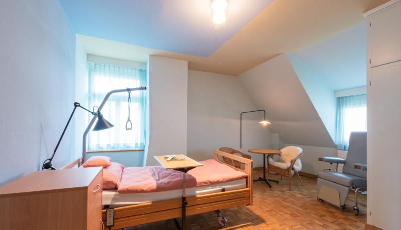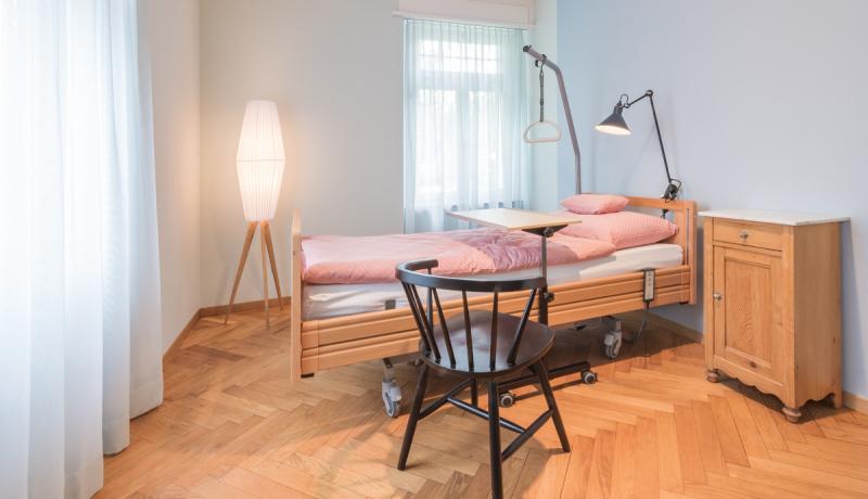 Sowohl die Patienten- als auch die Gemeinschaftsräume wurden in Zusammenarbeit mit «in2 design gmbh» aus Solothurn mit viel Liebe zum Detail gestaltet und eingerichtet. Bei der Farb- und Materialwahl lag das Augenmerk auf dem Aspekt der Seelenwärme. Wärme und Harmonie haben dabei eine tragende Rolle gespielt. Jedes der Zimmer wurde mit dem bestehenden und sehr besonderen Parkettboden belassen und hat so seinen ganz eigenen Ausdruck.